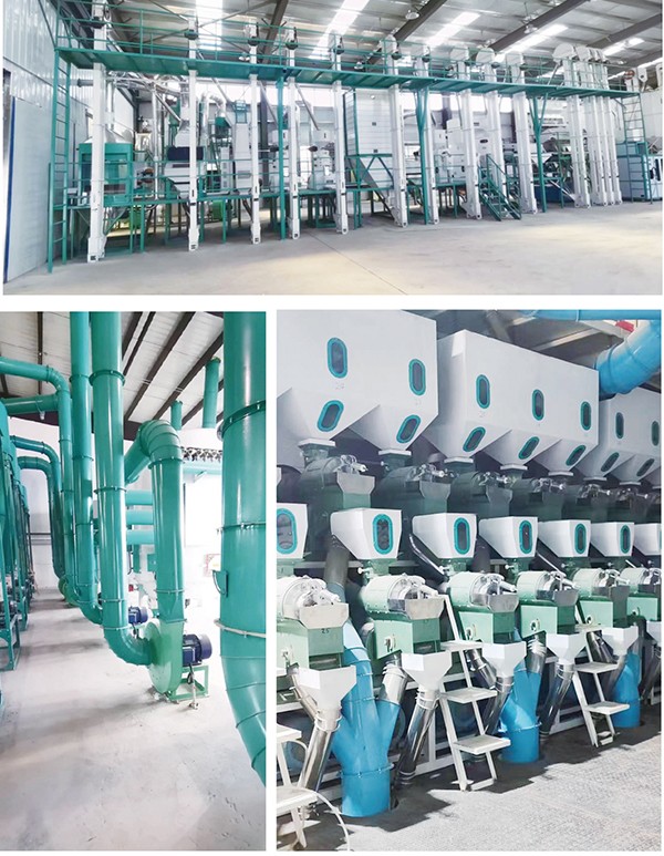 The series equipment consists of advanced equipment such as bucket elevator, screening and selecting machine, specific gravity stone cleaner, rubber roller rice huller (pneumatic), specific gravity paddy separator, rice mill with blowing wind, rice sorter,Color sorter, polishing, quantity scale and packaging and so on. Its structure is tight, function is completed and it is easy to operate. This machine can complete work from feeding the paddy to packing the finished rice, It has such virtues as follows: large capacity, fine quality rice, high rate of gaining rice, less broken rice, low energy consumption, etc.